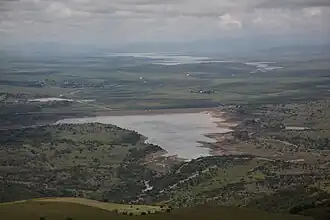 Woodstock Dam is located on the upper reaches of the Tugela, KwaZulu-Natal province of South Africa and is the main source of water for the Thukela-Vaal Transfer Scheme.[1] The dam was commissioned in 1982, has a storage capacity of 373.26 million cubic metres (13.182×10 9 cu ft),[1] and a surface area of 29.129 square kilometres (11.247 sq mi),[2] the dam wall is 54 metres (177 ft) high. The dam serves mainly for municipal and industrial water supply purposes and its hazard potential has been ranked high (3).