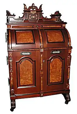 The Wooton desk is a variation of the fall front desk, native to Indianapolis, Indiana, and produced from 1874 to 1890.