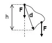 This result can be understood more simply by considering the torque as arising from a force of constant magnitude F, being applied perpendicularly to a lever arm at a distance , as shown in the figure. This force will act through the distance along the circular arc , so the work done is Introduce the torque τ = Fr, to obtain as presented above.