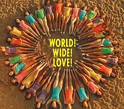 While there were many rumors that Hitomi was going to retire, they were quickly disbanded when her 34th single, "Sagashi Tsuduketeta Mono/World! Wide! Love!", a double a-side featuring a "pop ballad", was announced to be released on January 28, 2009. However, this single was soon cancelled for unknown reasons.[3] Not long after, another single release, tentatively titled, "Birth", was soon scheduled on online stores to release a month later, on February 18, 2009, in both a CD-only and CD+DVD edition. Once again, however, this single release was cancelled for unknown reasons.[4] Finally, however, her ninth studio album, then untitled, was confirmed by online retailers and Hitomi's official website. Soon after, "World! Wide! Love!" was announced.[5] The title track was used in skincare product "Easuterinie" commercials, and was also a tie-in song for the "Bee TV" series in Japan.[6] Both "World! Wide! Love!" and the b-side "Kokoro no Sogen" will appear on Hitomi's upcoming album "Love Life 2".[2]