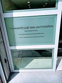 The World Federation of Diamond Bourses, founded in 1947,[1] was created to provide bourses trading in rough and polished diamonds and precious stones with a common set of trading practices. It is composed of 27[2] member diamond bourses. Their headquarters are in Antwerp. Members of The World Federation of Diamond Bourses (WFDB) act as a medium for wholesale diamond exchange, trading both polished and rough diamonds. The WFDB consists of independent diamond bourses in major centers of the diamond trade such as Tel Aviv, Antwerp, Mumbai, Johannesburg, London and New York and other cities across the United States, Europe and Asia. The WFDB provides a legal framework and convenes to enact regulations for its members. The following is a list of the 27 bourses.