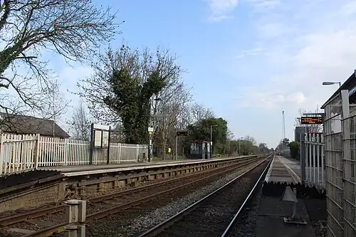 All tickets from here must be bought on the train or in advance, as no ticket facilities are available. Shelters are located on each platform, along with a payphone on platform 1. Train running information is offered via CIS screens, customer help points and timetable poster boards. Step-free access is provided to both platforms, though access is via narrow gates.[2]