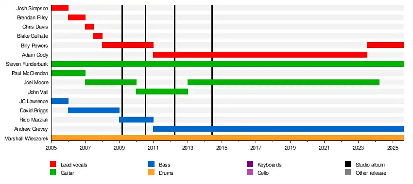 - Joel Moore – guitar (2007–2010, 2013–2024)