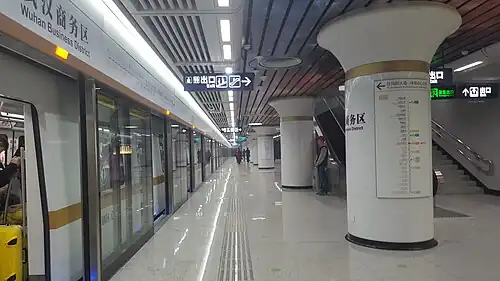 Wuhan Business District Station (Chinese: 武汉商务区站) is a station of Line 3 and Line 7 of Wuhan Metro. It entered revenue service on December 28, 2015. It is located in Jianghan District.[1] This station is an interchange station of Line 3, Line 7 and the under planning Line 10. It is near the Wuhan CBD.