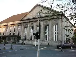 Construction of the current, only partly preserved, station building at Winklerstraße started in October 1911 and it was opened for the public on 10 October 1913.[6] The plans of the building were drafted by the Prussian architect Rüdell Alexander, who worked in a leading position in the railway department of the Prussian Ministry of Public Works.[7] The construction was directed by the government architect, Johannes Ziertmann and Edward Behne of the railway division (German: Eisenbahndirektion) of Elberfeld. The building was badly damaged in the Second World War.