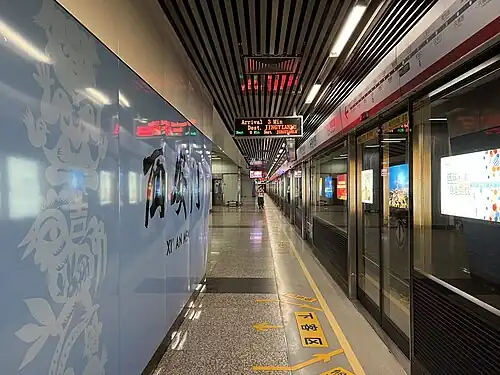 Xi'anmen Station (simplified Chinese: 西安门站; traditional Chinese: 西安門站; pinyin: Xī'ānmén Zhàn), formerly Yixianqiao station (逸仙桥站; 逸仙橋站; Yìxiānqiáo Zhàn) during planning until 2007,[1] is a station of Line 2 of the Nanjing Metro. It is named after the former gate known as Xi'anmen of the Ming Palace,[2] and started operations on 28 May 2010 along with the rest of Line 2.[3][4]