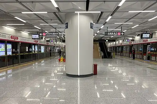 Xiaoshan International Airport (Chinese: 萧山国际机场) is a metro station on Line 1, Line 7 and Line 19 of Hangzhou Metro in China. It is located near the Terminal 3 of Hangzhou Xiaoshan International Airport.[1] The station began its service on 30 December 2020, together with the inauguration of Line 1 Phase 3 and Line 7.[2] The station has 3 exits.