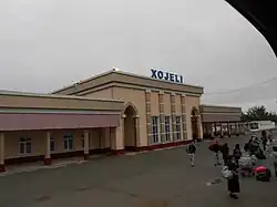 Xojeli, also Khodzheyli (Karakalpak: Xojeli/Хожели, [xoˈʒeli]; Russian: Ходжейли, romanized: Khodzheyli), is a city and seat of Xojeli District in Karakalpakstan in Uzbekistan.[1] It lies 15 km southwest of Nukus, and 25 km northeast of Konye-Urgench (Turkmenistan). Its population is 67,800 (2016).[2] Xojeli has a railway station on the line from Atyrau (western Kazakhstan) to Tashkent.[3]