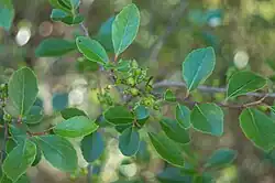 A photo by Facundo Chieffo of Xylosma tweediana displaying its leaves and immature fruits. | |