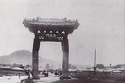 Yŏngŭnmun (Korean: 영은문; Hanja: 迎恩門) or Yeongeunmun Gate was a Joseon-era gate near present day Seoul, South Korea. Since it was a symbol of China's diplomatic influence on Joseon, the Enlightenment Party of the Joseon government intentionally demolished it in February 1895, seeking complete political independence of Joseon from China.