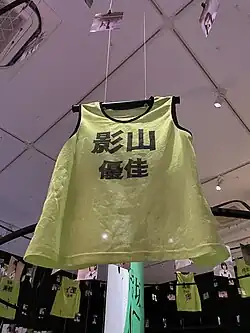 Kageyama is an association football enthusiast and played regularly in a local boys' team before joining Hiragana Keyakizaka46. Her catchphrases include "The soccer-loving girl"[a] and "Gegenpressing to your heart".[b][15][16] She holds a Class 4 referee qualification[c] and regularly wrote about the Japanese league on her blog in a series titled "Yūka Kageyama's WE LOVE J.League", which aimed to cover all 56 teams from all three league divisions.[18][19] Her favorite teams include Sanfrecce Hiroshima, Borussia Dortmund, and Leeds United F.C.[20][21][22]