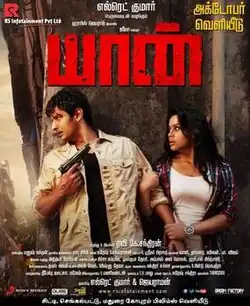 Yaan (transl. Me) is a 2014 Indian Tamil-language action thriller film written, directed and filmed by Ravi K. Chandran. It stars Jiiva and Thulasi Nair in her second and final acting credit.[1] The film's soundtrack and score was composed by Harris Jayaraj, while editing and art direction were done by A. Sreekar Prasad and Sabu Cyril, respectively.[2] Resul Pookutty was in charge of the sound mixing and Brinda was in charge of the choreography. The film was reported to be based on the 1978 film Midnight Express.[3][4]