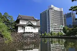 Yagura (櫓, 矢倉[1]) is the Japanese word for "tower", "turret", "keep", or "scaffold".[2] The word is most often seen in reference to structures in Japanese castle compounds but can be used in other situations as well. The bandstand tower erected for Bon Festival is often called a yagura, as are similar structures used in other festivals.[3] Yagura-daiko (taiko drumming from atop a yagura) is a traditional part of professional sumo competitions.[4]