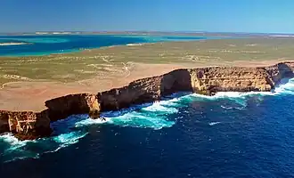 The western portion, known as the Edel subregion, includes the Edel Land peninsula and Dirk Hartog, Bernier, and Dorre islands, which enclose Shark Bay on the west. It also includes the coastal plain south of Shark Bay nearly to Kalbarri, where it transitions to the Geraldton Sandplains bioregion. The Edel subregion rests on the Carnarvon and Perth sedimentary basins. The Zuytdorp Cliffs line the coast from the northern end of Edel Land to the mouth of the Murchison River. Soils are generally white sands along the coast, and pale red quaternary sands further inland.[4]