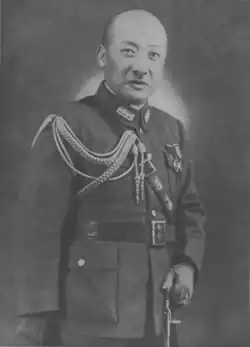 Yang Kuiyi was born in the Hubei Province during the reign of the Guangxu Emperor and joined the local New Army in 1903.[1] In 1912, he studied at the infantry department of the Imperial Japanese Army Academy. Upon his return to Republic of China he held various administrative positions in his native Hubei Province since the early 1930s and also rose through the ranks of the National Revolutionary Army. In 1939, he defected to the side of Wang Jingwei and joined his new pro-Japanese regime, proclaimed in Nanjing. When the Reorganized National Government was formally inaugurated in 1940, he was made Chief of General Staff and a member of several government committees. In 1942, he was made governor of the Hubei province, with the provincial government being reorganized in 1943. In 1945, Yang was appointed to head the National Military Council, a post that he held for the rest of the war. He was executed in 1946.