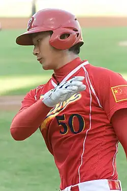 ![]() Yang with the China national baseball team in 2008 | |