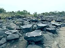 The Yangpu Ancient Salt Field (simplified Chinese: 洋浦千年古盐田; traditional Chinese: 洋浦千年古鹽田; pinyin: Yángpǔ qiānnián gǔ yántián) is an archeological heritage site in Yantian village, on the Yangpu Peninsula in Hainan, China. The site is an example of salt's various roles in Chinese history. The area comprises more than 1,000 stones, cut flat on top, with a trough and narrow rim, which are used to evaporate seawater to produce salt.[1]