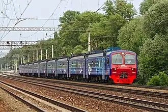 The Yaroslavsky suburban railway line (Russian: Ярославское направление Московской железной дороги) is one of eleven railway lines used for suburban railway connections between Moscow, Russia, and surrounding areas, mostly in Moscow Oblast. The Yaroslavsky suburban railway line connects Moscow with the stations in the northeast, in particular, with the towns of Mytishchi, Korolyov, Ivanteyevka, Fryazino, Shchyolkovo, Pushkino, Krasnoarmeysk, Sergiyev Posad, Strunino, and Alexandrov. The stations the line serves are located in Moscow, as well as in the towns of Mytishchi, Kaliningrad, Shchyolkovo, Ivanteyevka, Fryazino, Noginsk, Pushkino, Krasnoarmeysk, and Sergiyev-Posad in Moscow Oblast, as well as Alexandrovsky District of Vladimir Oblast. The suburban trains have their southwestern terminus at Moscow Yaroslavsky railway station in Moscow. In the northeastern direction, the suburban trains terminate at Bolshevo, Fryazino Passazhirskaya, Monino, Shchyolkovo, Fryazevo, Pushkino, Sofrino, Krasnoarmeysk, Sergiyev Posad, Alexandrov, and Balakirevo.[1] The line is served by the Moscow Railway subsidiary of Russian Railways and the Central Suburban Passenger Company.