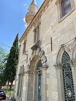 At the entrance of the mosque, there is the date of 1322 Hijri.[1] Due to the work of Greeks during the construction of the mosque and the influence of their culture, the architectural type of the mosque is reminiscent of the church.[2] There are star and crescent motifs inside the building.[3]