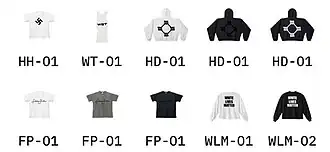 Clothing on the site is designed by either West himself, Gosha Rubchinskiy, or Mowalola Ogunlesi.[30] Notably, everything is sold for US$20. The items are produced by Los Angeles Apparel, a company owned by longtime friend of West and CEO of Yeezy, Dov Charney.[49] Items include t-shirts, hoodies, windbreakers, trench coats, shorts, joggers, shoes, boots, and socks. All items are named with an abbreviation denoting the item type followed by a number denoting the variant, with hoodies being HD-01/HD-02, and t-shirts being TS-01/TS-02.