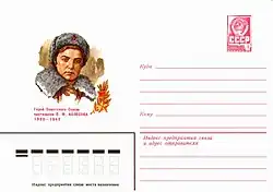 Yelena Fyodorovna Kolesova (Russian: Елена Фёдоровна Колесова; 1 August 1920 – 11 September 1942) was the commander of a partisan unit of the Soviet special forces during World War II. After dying in battle in a successful attack on a German fortress in Vydritsa, Kolesova was posthumously awarded the title Hero of the Soviet Union on 21 November 1944.[1]