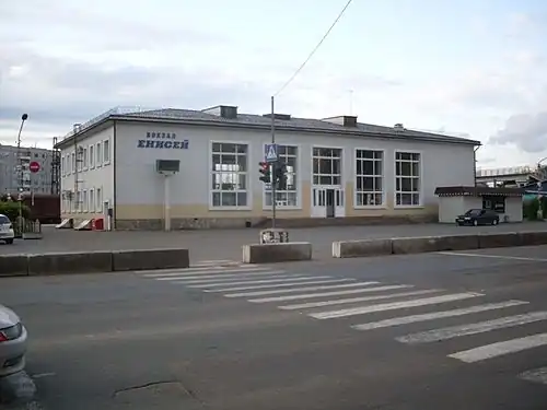 Yenisey railway station (Russian: Енисей) is a railway station on the Krasnoyarsk Railway. It is located on the Trans-Siberian Railway, 4,103 kilometres (2,549 mi) east of Moscow and 5 kilometres (3.1 mi) east of the Krasnoyarsk Railway station.
