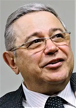 Yevgeny Vaganovich Petrosyan (Russian: Евгений Ваганович Петросян (Петросянц); Armenian: Եվգենի Վահանի Պետրոսյան (Պետրոսյանց), romanized: Yevgeni Vahani Petrosyan (Petrosyants); born 16 September 1945) is a Soviet–Russian comedian of Armenian and Jewish descent.[1][2][3][4] In 2005 he was named among the most influential figures in contemporary Russia, in a survey conducted by independent polling agency The Levada Centre.[5] A popular comedian since the days of the Soviet Union,[6] Petrosyan was the host of TV variety show Crooked Mirror.[7]