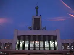 The first train arrived at Yinchuan station, then only a stop on the Baotou–Lanzhou railway, on August 1, 1958. The first station building was opened in 1959.[4][5] In 1988, a new station building was inaugurated, which was replaced in 2011 by a building on the opposite (eastern) side of the platforms.[6]