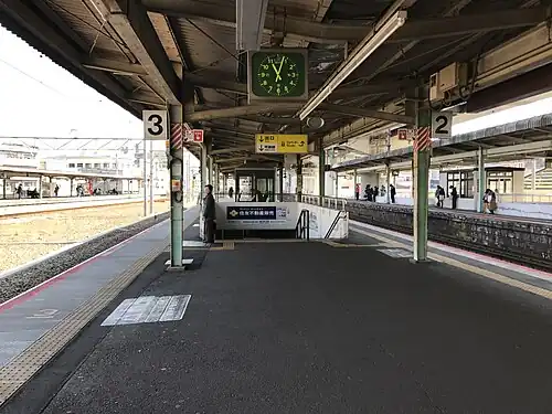 Platforms | 2 island platforms, 1 side platform | ||||||||||||||||||||||