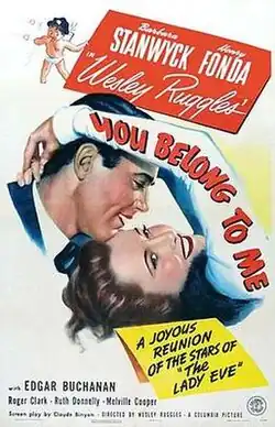 You Belong to Me is a 1941 American romantic comedy film produced and directed by Wesley Ruggles and starring Barbara Stanwyck, Henry Fonda and Edgar Buchanan. Based on a story by Dalton Trumbo, and written by Claude Binyon, the film is about a wealthy man who meets and falls in love with a beautiful doctor while on a ski trip. After a courtship complicated by his hypochondria, she agrees to marry him on the condition that she continue to practice medicine. His jealousy at the thought of her seeing male patients, however, soon threatens their marriage. The film was released in the United Kingdom as Good Morning, Doctor, and was remade as Emergency Wedding in 1950.