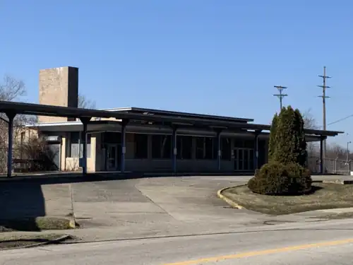 Youngstown is a former Pennsylvania Railroad station in Youngstown, Ohio. This station was preceded by another depot, which was condemned and demolished in 1949.[1] Construction of this station began in February 1948, and the completed building was dedicated on March 15, 1949.[2][3] The building was designed by Walker & Weeks, architects of Cleveland, Ohio and built by the Heller-Murray Company of Youngstown, Ohio at a cost of $350,000, or approximately $4.4 million in 2022 US dollars.[2][4] This station closed in 1965, with the termination of remaining commuter service between Youngstown and Euclid Avenue station in Cleveland.[5][6] Ownership of the Lordstown Secondary as well as the station passed from Penn Central to the Baltimore and Ohio Railroad, Conrail, and is currently owned by Norfolk Southern. The station itself was acquired by Phantom Fireworks and previously used as a firework showroom.