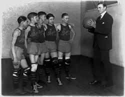 Youth sports were an important way of life for Native Americans within boarding schools.[12] Sports for Native Americans living in boarding schools were so important that they were on a similar level of importance as work and teaching.[12] School sports such as track and field, basketball, and wrestling were activities that some Native Americans felt pride in when they participated.[13] This pride was created by the appeal of competition and success, especially against white teams.[13] Jeff McCloud, former resident of a boarding school for Native Americans, states that experiences in sports "helped him to critically read the pain and degradation of contemporary life on and off Indian reservations as something other than a flaw in Native American character or the inevitable outcome of historical progress."[13] Through these experiences, sport could be a positive aspect of the lives of Native Americans.
