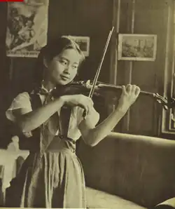 She started her education at the Nankai Girls' High School in Tianjin.[3] She also studied at the Shanghai Conservatory of Music and was invited by Tian Han, Chinese playwright, to join the South China Society in 1929, where she soon rose to fame playing the lead role in Oscar Wilde's play Salome.[3] The next year, she starred in Tian Han's adaptation of Georges Bizet's Carmen.[4] Her performance of Salome was widely published in leading magazines including in Southland Monthly.[5] Her considerable “physical allure” was described by a magazine as a “peerless beauty.”[6] She is also remembered for her association with “prominent male cultural figures” in China including Tian Han, Zhao Taimou, Xu Zhimo, Wen Yiduo, and Liang Shiqiu.[7]