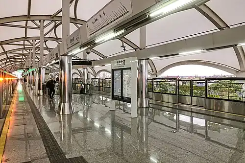 Yuandong Avenue (Chinese: 远东大道) is a station on Line 2 of the Shanghai Metro, located in the town of Zhuqiao, Pudong. This station is part of the eastward extension from Guanglan Road to Pudong International Airport that opened on 8 April 2010.[1][2]