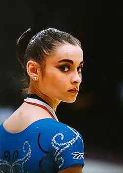 Yulia Vladimirovna Barsukova (Russian: Ю́лия Влади́мировна Барсуко́ва, born 31 December 1978) is a Russian retired individual rhythmic gymnast. She is the 2000 Olympic champion in the All-Around, the 2000 Grand Prix Final All-around champion, the 1999 World All-around bronze medalist, 2000 European All-around bronze medalist and 1999 Grand Prix Final All-around bronze medalist.