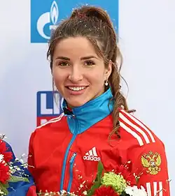 Yuliya Artyomovna Kanakina (Russian: Юлия Артёмовна Канакина; born 11 December 1995) is a Russian skeleton racer who competes on the Skeleton World Cup circuit. She began international competition in 2011, and was promoted to the World Cup squad in the 2014–15 season. Before starting skeleton, Kanakina was a ballet dancer. She was the IBSF Junior World Champion in women's skeleton for 2017 in Sigulda, and finished 26th in the senior IBSF World Championships later that year.[1][2] In 2018, Kanakina took silver at the Junior World Championships, 0.81 seconds behind Anna Fernstädt.[3]