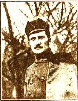 At the outbreak of the World War I in 1914, he enlisted in the Legion of Ukrainian Sich Riflemen, became one of the active contributors to the Press Quarter, a photojournalist, and one of those who opened a great page in the history of the Ukrainian Army of the early twentieth century.[1] In December 1914, Butsmaniuk's first photographs dedicated to the military glory of the Legion of Ukrainian Sich Riflemen were published, and the following year his frontline paintings were combined into a series of postcards. Butsmaniuk was the chief designer of the legion's symbols and insignia. Later he fought in the Ukrainian Galician Army (until 1919). He was wounded several times. Ranks: hauptmann of the Ukrainian Sich Riflemen, ataman of the Ukrainian People's Army.[2] In 1920–1923 he was in internment camps in Czechoslovakia. After the liquidation of the camps, he continued his studies at the Prague Academy of Arts and in 1927 returned to Lviv. He married Iryna Chaikivska. In 1922, his son Bohdan was born.