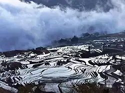 From the Yuan dynasty onward, the area was part of a central-government sponsored population movement towards the southwestern frontier, with two major waves of migrants arriving from Han-majority areas in northern and southeast China.[9] As with other parts of China's southwest, Japanese occupation in the north during World War II forced another migration of Han people into the region. These two waves of migration contributed to Yunnan being one of the most ethnically diverse provinces of China, with ethnic minorities accounting for about 34 percent of its total population.[10] Major ethnic groups include Yi, Bai, Hani, Zhuang, Dai, and Miao.[11] Yunnan has also been identified as the birthplace of tea,[12] and as the region of origin of the plant genus Cannabis.[13]