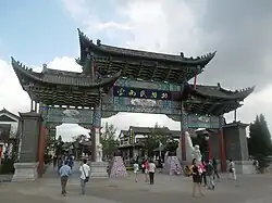 The Yunnan Ethnic Village (Chinese: 云南民族村; pinyin: Yúnnán Mínzú Cūn) is an ethnographic village and theme park that displays the various folklore, culture, and architecture of 26 ethnic groups in Yunnan Province, China.[1] The park's major goal is mainly to display some aspects of Yunnan's ethnicity, cultural diversity, and heritage.[2] Located in the southwest suburbs of Kunming next to Dianchi lake, Yunnan Ethnic Village covers an area of 89 hectares including 31 hectares of water.[1] It is classified as a AAAA-class tourist attraction.