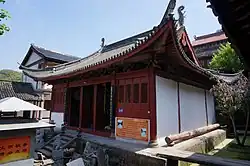 The Mahavira Hall is three rooms wide with single-eave gable and hip roof.