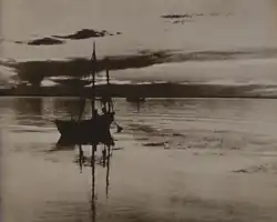 In the 1910s, Eremin worked with generalities: he stopped working with the small details in the photo, that accurately indicated the time and place of the shot, the surroundings, and tried to focus the viewer's attention on the subjective experiences and impressions of the author. According to Fomin, this was his way of fighting against the documentary nature of photography. His work of this period is characterized by moods of sadness and anxiety, he was attracted by the intricate weave of branches, unusual shape of clouds, reflections in mirrors and water surfaces.[47] His photographs were dominated by dark tonality and the contours of the subjects were blurred. Flares or spots of light allowed the photographer to emphasize the main element of the image.[48] In Eremin's pictures, romantic moods prevailed, landscapes were sometimes decorative, and the photographer was fond of techniques that created an abstract, ideal beauty.[49] Fomin called these features of his work decadent.[47] At this time, the photographer was fascinated by the technical side of negative manifestation. He used bromoleum, gum arabic, the "radiant gum arabic" invented by Anatoly Trapani, sputtering.[24]