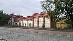 Due to the Nazi regime's legislation restricting the rights of German Jews, including the prohibition of Jewish people from owning businesses, the factory was confiscated from the Fränkel-Pinkus family in 1938 and the family was forced to flee Germany.[2] The company was then renamed Schlesische Feinweberei AG. In late September, 1944, the Nazi regime established a sub-camp of Auschwitz in the factory where about 400 women, mostly Jews from Hungary, were forced to work on the spinning machines. The factory was known as and was directed by SS-Oberscharführer Bernhard Becker with twenty additional members of the SS. The subcamp was shut down on 19 January 1945 and the women there were forced to march by foot to the Gross-Rosen concentration camp.[3] From there they were then taken to the Bergen-Belsen concentration camp; it is unknown who among them survived.[4][5]