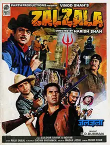 Zalzala is a 1988 Indian Hindi-language action adventure film directed by Harish Shah. It features an ensemble cast of Dharmendra, Shatrughan Sinha, Rajiv Kapoor, Anita Raj, Kimi Katkar, Vijayta Pandit, Danny Denzongpa and Rati Agnihotri.[2] It is a loose rehash of 1969 Western, Mackenna's Gold.[3][4] Zalzala was released on 13 May 1988 and received mainly mixed reviews from critics.[5]