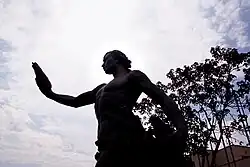 The Municipal Palace was constructed in 1942 as a school. It became the seat of the municipal government in 1968, and has been remodeled several times since.[1] The facade is decorated with reliefs.[7] The building's staircase contains a mural called "La Revolución Universal" (The Universal Revolution) done by Guadalajara artist Guillermo Chavez Vega in 1970. This mural depicts scenes from the French, Industrial, English, Mexican and Socialist Revolutions. It also contains images of indigenous art.[1] The Plaza Civica or Civic Plaza is in front of the municipal palace, with a 7 metres (23 ft) flagpole and a bronze sculpture of the Mexican themed eagle devouring a serpent.[7]