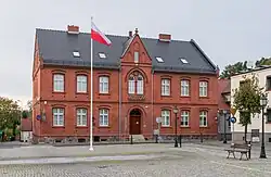 In 1939, frequent border violations by Germany took place, and on 25 August, Germany halted international rail transport.[11] On 1 September 1939, the day of the German invasion of Poland, which marked the beginning of World War II, at dawn, the Germans invaded the town, which was recaptured by the Poles in the morning, however, it soon fell to Germany.[12] During the German occupation, the Polish population was subjected to various crimes, and in December 1939 the Germans expelled 110 Poles, activists, officials and wealthier residents with entire families, whose homes were then handed over to German colonists as part of the Lebensraum policy.[13] The German Nazis operated a Nazi prison and a forced labour camp for Jews in the town,[14][15] and destroyed the pre-war monument dedicated to the Polish insurgents of the Greater Poland uprising of 1918–1919.[6] The Polish resistance movement was present in Zbąszyń. The co-founder of the local unit of the Narodowa Organizacja Bojowa resistance organization, was arrested by the Germans in 1941, and sentenced to death and executed the following year.[16] In January 1945, a German-perpetrated death march of prisoners of various nationalities from the dissolved camp in Żabikowo to the Sachsenhausen concentration camp passed through the town.[17]