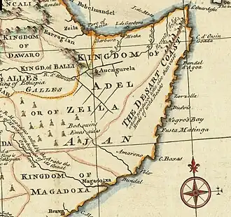 Zeila, also known as Zaila or Zayla, was a historical Muslim region in the Horn of Africa.[1][2][3][4] The region was named after the port city of Zeila in modern-day Somalia.[5][6]