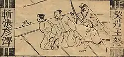 Zhang Yanze (Chinese: 張彥澤) (died January 27, 947[1][2]) was an ethnic Göktürk general of the Later Tang, Later Jin, and Liao dynasties of China. He was reviled in traditional sources for his cruelty, avarice, and lack of faithfulness to the Later Jin.
