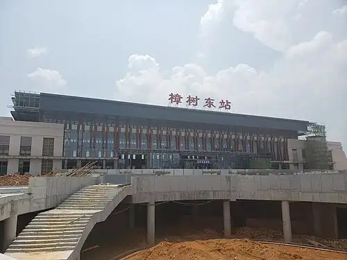 Zhangshu East railway station (Chinese: 樟树东站; pinyin: Zhāngshù Dōng zhàn) is a railway station in Zhangshu, Yichun, Jiangxi, China. It is an intermediate stop on both the Beijing–Kowloon railway and the Nanchang–Ganzhou high-speed railway.[1] It was opened in 1996.[2] On 26 December 2019, high-speed services began calling at the station.[3]