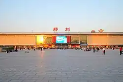 Zhengzhou railway station (simplified Chinese: 郑州站; traditional Chinese: 鄭州站; pinyin: Zhèngzhōu zhàn) is a passenger railway station in Erqi District, Zhengzhou, Henan. It is located in the city center, about 1 km southwest to the Erqi Memorial Tower. As the junction of the important Beijing-Guangzhou Railway and Longhai Railway, the station is one of the busiest in China, and is called as "the heart of Chinese railway network".