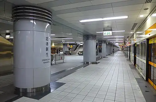 Zhongxiao Xinsheng (Chinese: 忠孝新生, formerly transliterated as Chunghsiao Hsinsheng Station until 2003) is a metro station in Taipei, Taiwan served by the Taipei Metro. It is a transfer station between the Zhonghe–Xinlu line and Bannan line.[3]